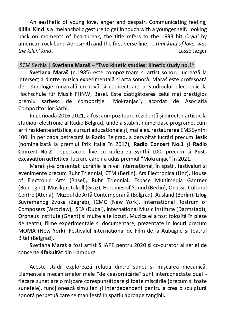 ISCM Serbia | Svetlana Maraš – “Two kinetic studies: Kinetic study no.1”