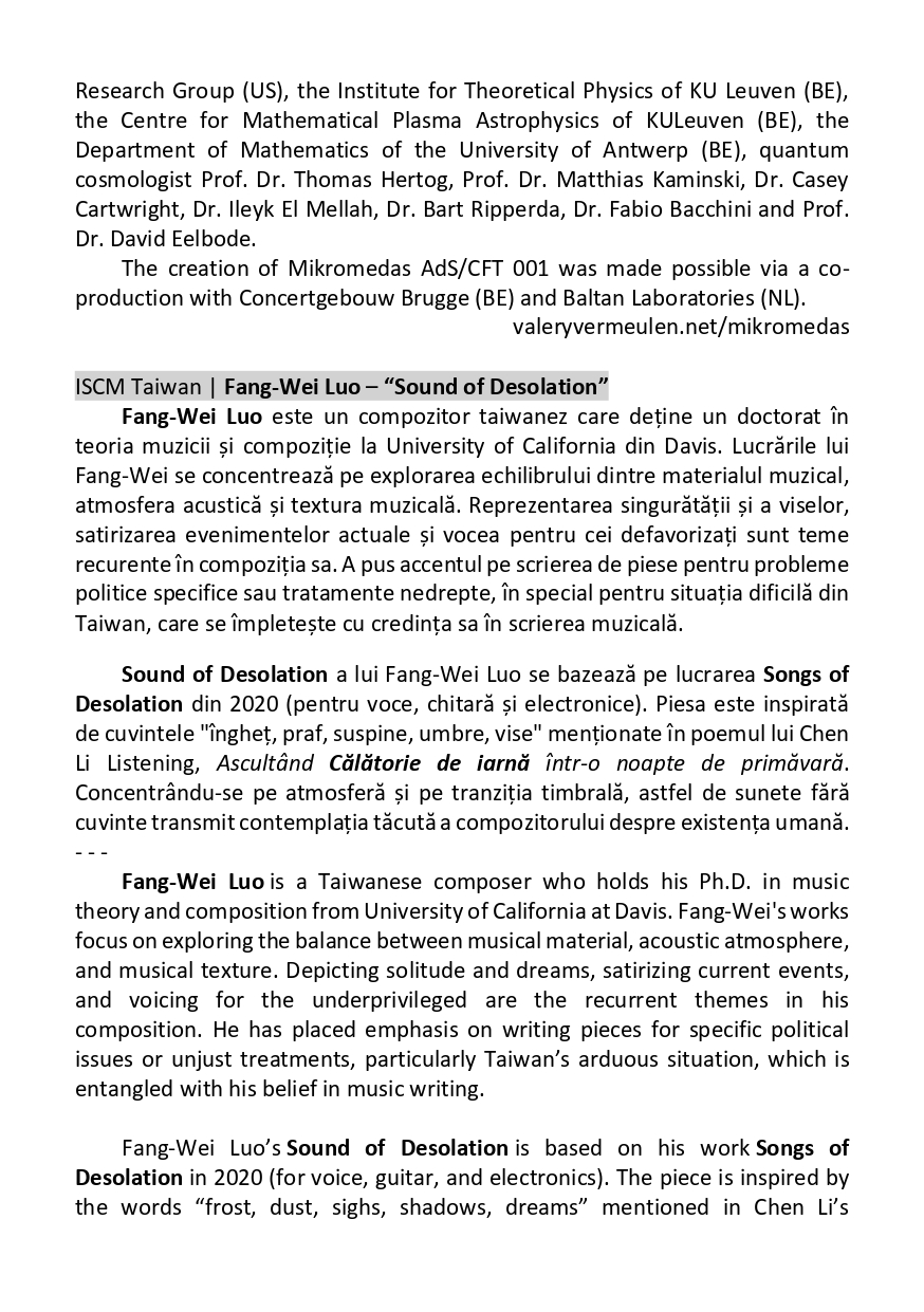 ISCM Taiwan | Fang-Wei Luo – “Sound of Desolation”