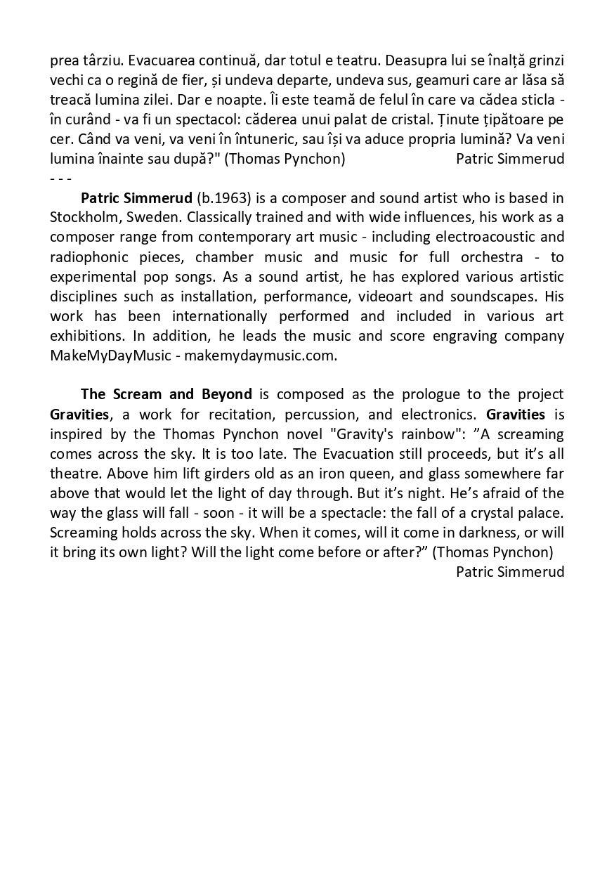Media partners: Radio România Muzical, Radio România Cultural, CIMRO, BookHub.ro, Zile și Nopți, Actualitatea Muzicală